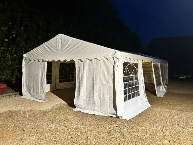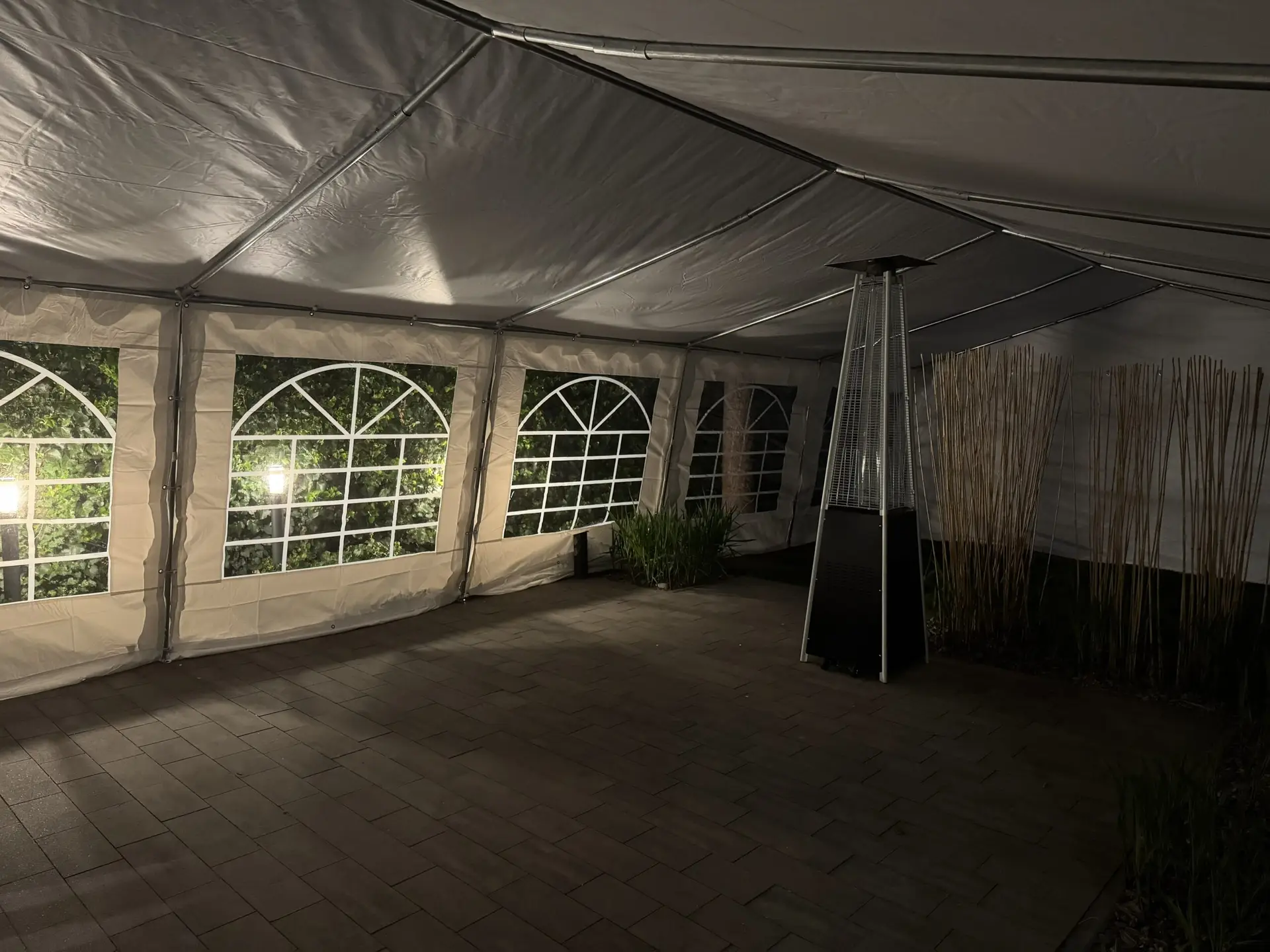 Przestronny namiot oferujący 50 komfortowych miejsc siedzących.