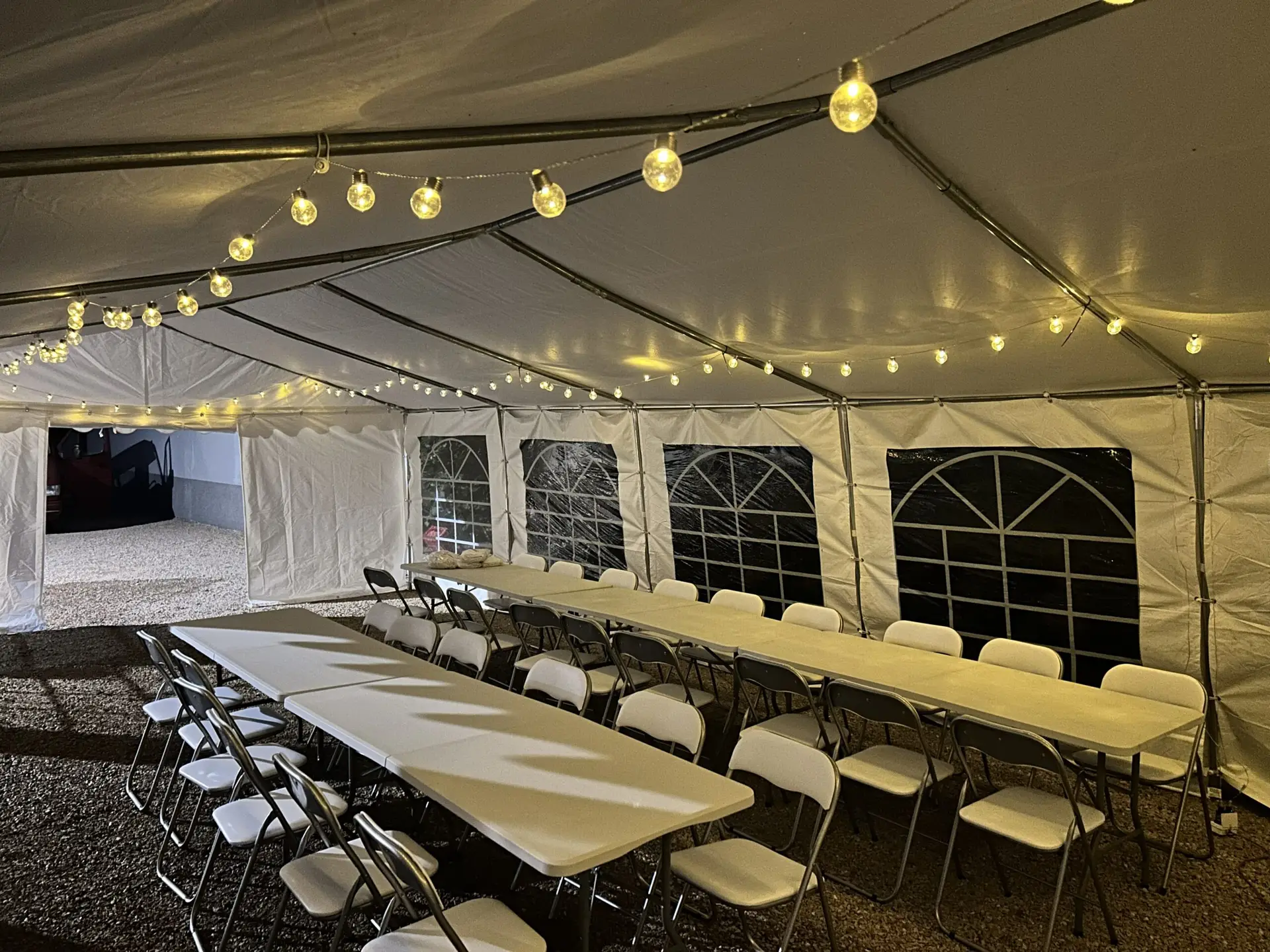 W cenie otrzymujesz pokrowce na stoły i krzesełka oraz nastrojowe lampki, które stworzą klimat.